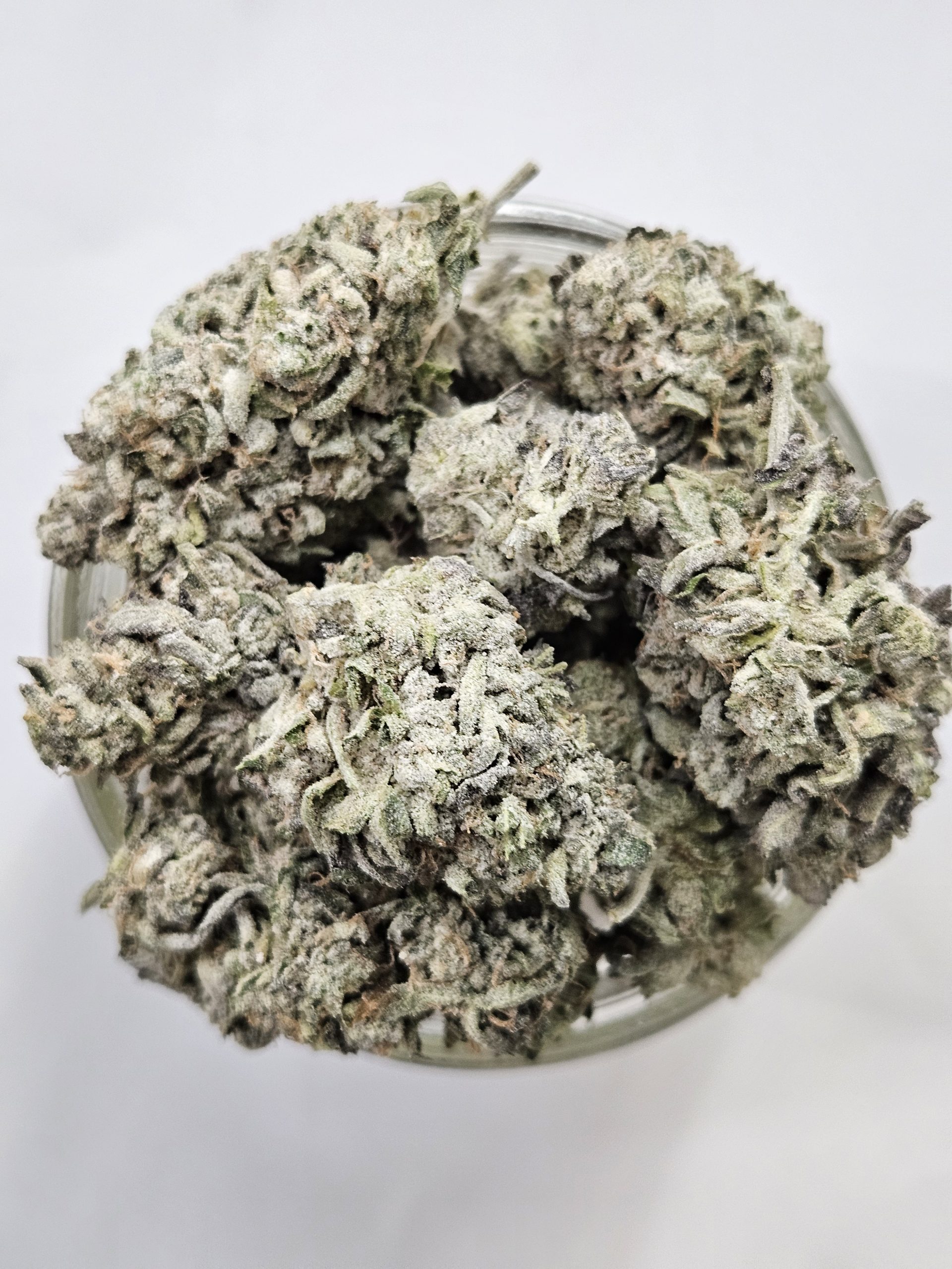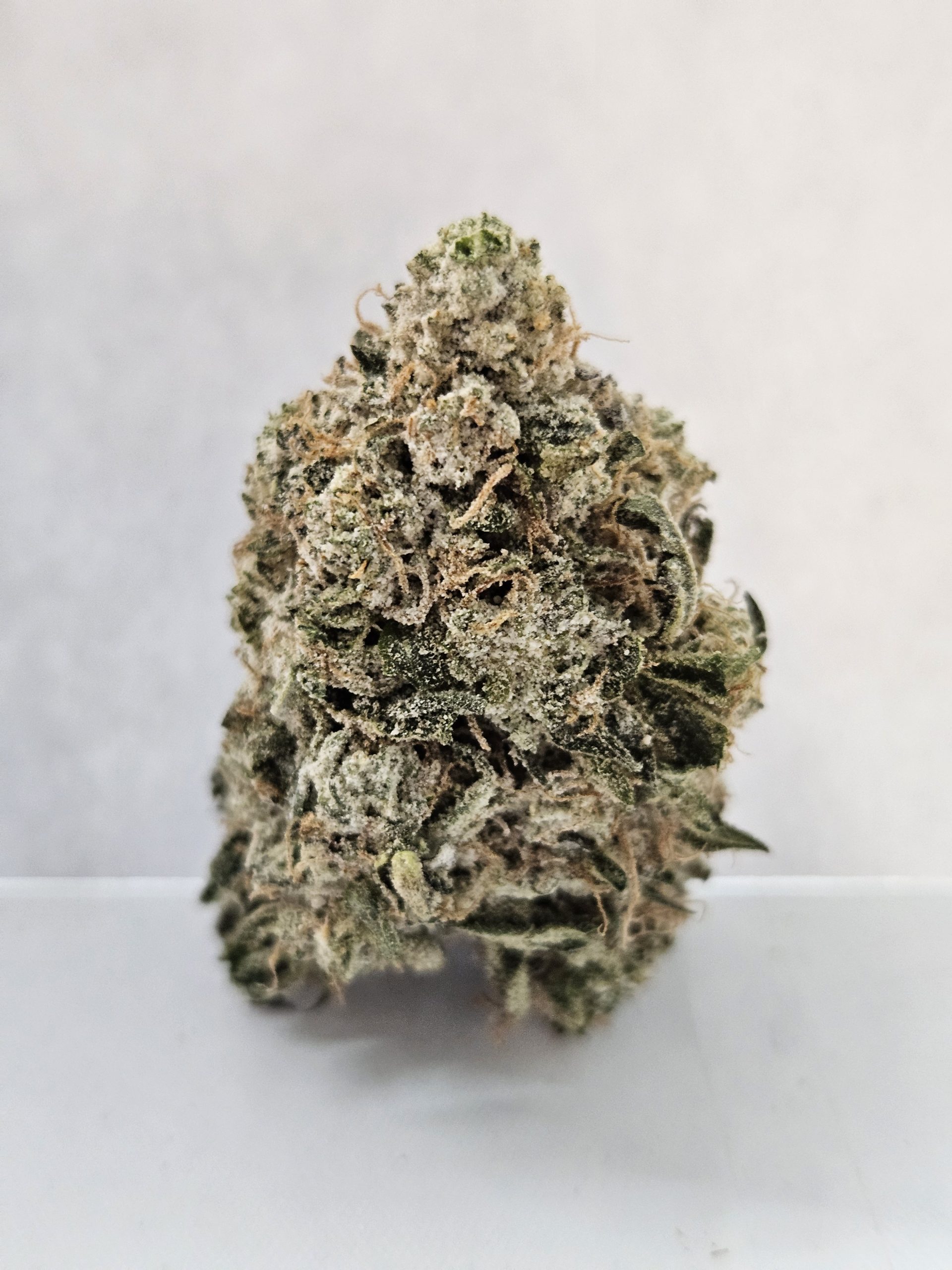 Product known for its high potency (55+%), pungent aroma, and deeply relaxing effects. The THCA coating – often applied as “diamonds” or a kief-like dusting) significantly boosts the overall cannabinoid content, enhancing the strain’s already powerful characteristics. The product is characterized by a thick, frosty layer of trichomes, which is further intensified by the application of THCA concentrate, giving it a heavily crystal-coated, “sticky” appearance
